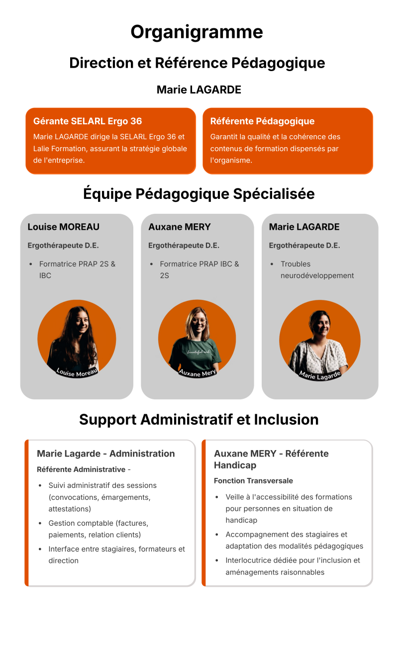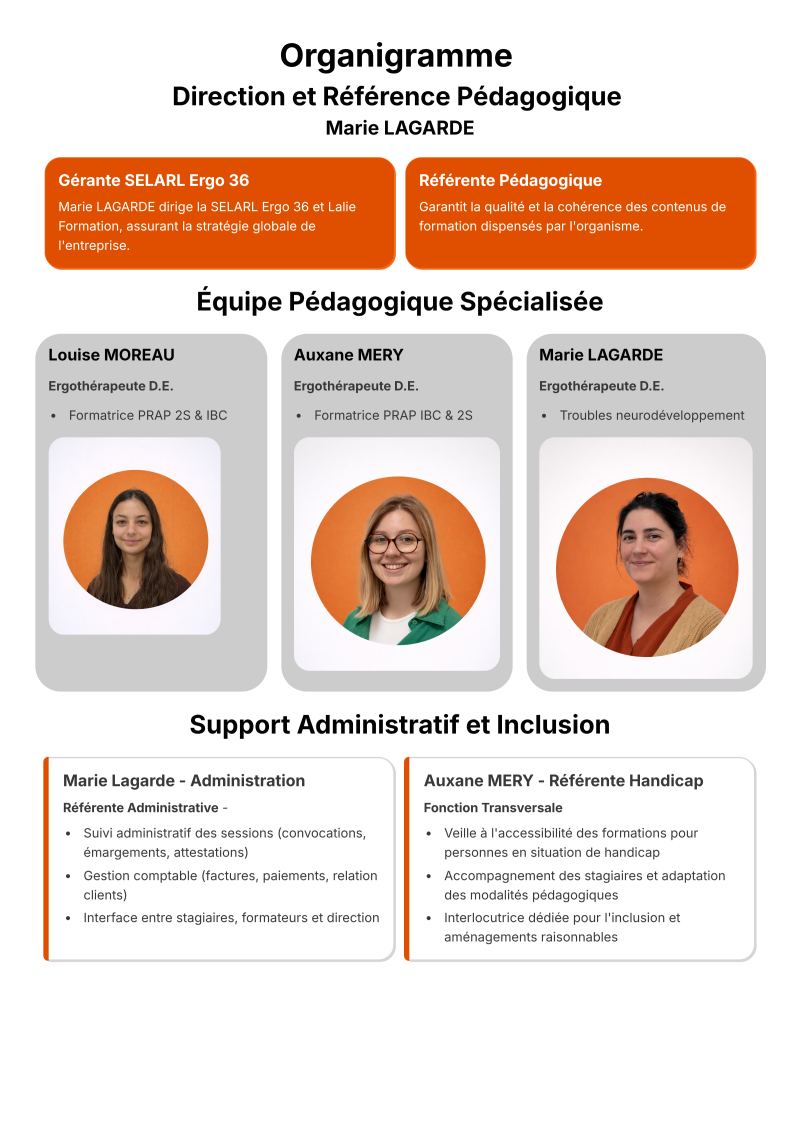Lalie Formation est l'organisme de formation professionnelle de la SELARL Ergo 36, dédié à l'accompagnement et au développement des compétences des professionnels de la petite enfance, du secteur médico-social, éducatif et sanitaire.